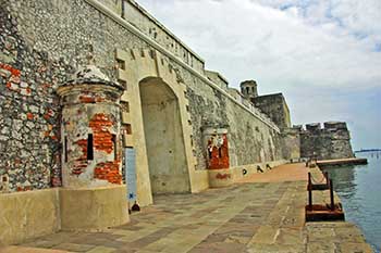 Both fortresses feature a number of sentry boxes (garitas). Each accommodated a single guard and allowed for a 180-degree view of the area. There is an open entrance on the side and a slit from which the sentry could fire his rifle while at the same time minimizing his own exposure to return fire. The most infamous garita, known as the Devil’s Sentry Box, was situated below the northern wall of San Cristobal, just above the water. Soldiers were afraid to be posted here in the dark of night because it was believed to be haunted. You can visit this garita but only during daylight hours.