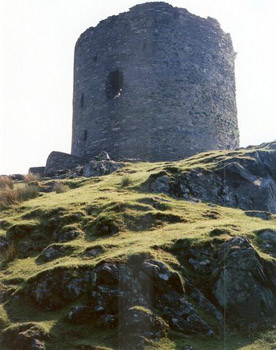 At the outskirts of Llanberis, across the emerald fields, the single gray stone tower of Dolbardarn castle rises above a grove of oak trees. This old, ruined castle, situated between the twin lakes of Llyn Padarn and Llyn Peris in the Llanberis Pass, is one of Wales’ oldest castles, believed to have been built and occupied from about 233 B.C. It was once used as a prison for Owain Goch, who languished there for 23 years, locked up by his rebel brother Llewelyn the Great. Dolbardan was the last Welsh stronghold to be surrendered to Edward I after the death of Llewelyn in 1282.