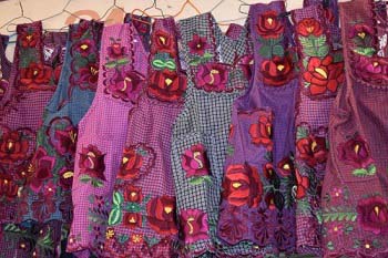 Much like 200 years ago, the market is still the weekly gathering place for villagers from around the region to socialize, gossip, and trade goods. Subtle differences in blouses, aprons, and headscarves define the villagers. The intricately machine embroidered, and beribboned aprons worn by Zapotecan women occupy an entire row of vendor stalls.