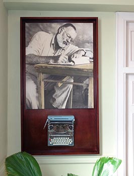 To imagine that he’d sat in this very room, barefoot, unspooling stories onto the page, letter by letter, hunched over the simple black typewriter, was moving. In this very room, on the very typewriter mounted on the wall outside, he began “For Whom The Bell Tolls” about the Spanish Civil War. To imagine this robust sportsman and adventurer sitting quietly, diligently pecking out his stories, conjures up the contrasts within this man. Though even in his writing, he had the spirit of a hunter, equating his old typewriter—with its demands for hard strikes upon each key—as his “Royal Machine Gun.”