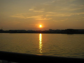 I’ve always had those zany lyrics in my head despite the fact that I was about as close to the Ohio River in Casper, Wyoming, as I was to the moon. I had never actually gone down the Ohio River until I boarded the Spirit of Jefferson riverboat during a muggy summer evening from the docks of Louisville for a dinner cruise. It was full of great-tasting food like turkey, roast beef, macaroni salad, mashed potatoes, and a really rich banana cream pie for dessert. On a humid night, it’s a godsend when a breeze is blowing and you can find a seat on the top deck of a ship that’s been in service since 1963, seeing action in New Orleans and St. Louis with different names (Mark Twain and Huck Finn) before getting its current name in 1996 as a result of a mayoral contest. After dinner, while people danced to the classic rock tunes of generations past, I sat and pondered the water, the residential and industrial landmarks, the beautiful sunset, and a beautifully-lit Louisville skyline, of which the city has been in existence since 1780. The two-hour cruise ended with an ensuing appearance of a cherry-colored moon!