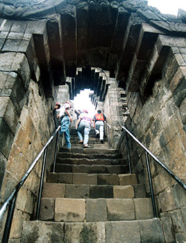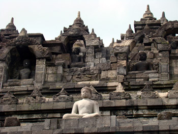 These were not the monks and pilgrims I had expected. These tourists, who had come here for the sights, did not seem to appreciate the significance of the temple. This man made holy mountain had served as the center of the world for the Javanese back in the 9th century. Could they have imagined then that, over a millennia later, its reliefs would be ignored, its statues defaced, and its revered position would be downgraded to a tourist attraction on the extreme outskirts of a regional city?