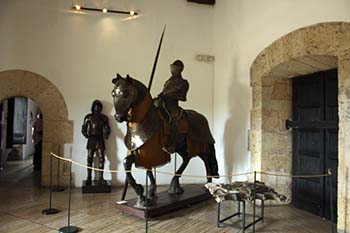 The second floor features Diego’s office where pictures of Christopher and Diego Columbus size you up as you review copies of official documents authorized by Queen Isabella. The adjoining family living room has two large windows that open out to a balcony overlooking the Plaza de Armas (Plaza de Espana). From here Diego could supervise his soldiers parading around. Today you are more likely to look out over art shows and concerts rather than military drills.