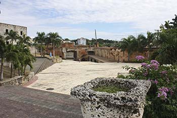 Adjacent to the Alcazar, the San Pedro Gate connects the Plaza de Armas with the Ozama River. Spanish ships docked outside and priests, the only literate residents of the city at the time, would complete the necessary paperwork before the cargo was unloaded and transferred into warehouses (Las Ataranzas) straddling the plaza. A number of these former warehouses still stand and have been converted into restaurants and touristy shops.