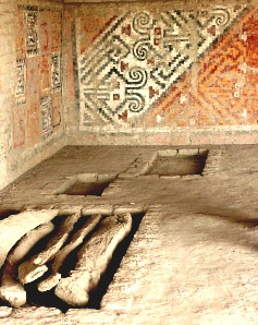 Covering the other walls were ritual battle scenes, warriors, a human sacrifice scene and stylized geometeric images of fish.