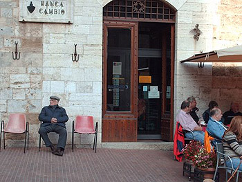 I hear the merry ping of a horn behind me and automatically step aside; my short stay here has already schooled me in small-town road etiquette. A moment later, a woman on a bicycle glides leisurely past. Several pedestrians wave to her and she squeezes her bell again in a cheery greeting. It strikes me that aside from the bicycle horn, the only sound I hear on this small street in Tuscany is the foreign chatter of a content population. It is as if the harsh industrial world of machinery, pollution, and environmental distress has been left at the town border.