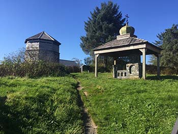 Originally three blockades were built to protect the Russian settlement; if you look closely at the remaining one, you’ll notice chainsaw marks, which indicates the blockhouse is a replica and was reconstructed on the site of the original. Located directly across the street from the Princess grave, perched on top of the knoll, these blockhouses were incorporated into a stockade wall that guarded Old Sitka. Peek inside to find an old cannon. The site is marked with storyboard about a church, the lands and a divided town. Also located here are the gravesites of original Russian settlers and their corresponding stories.