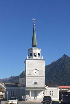 Continuing West on Lincoln Street, you go barely a block and St. Michael’s Russian Orthodox Church is sitting right in the middle of the street, literally. Built in 1844 century, it was the earliest Orthodox cathedral in the New World and the oldest church in Alaska. The Russian American Company funded the project, the bells were forged in Alaska and the clock fixed in the bell tower was made by Saint Innocent of Alaska himself. Stepping past the royal doors you’ll find a treasure trove of Russian ornate Old World icons from the 1700 and 1800s. Most notable icons are Our Lady of Sitka (better known as the Sitka Madonna) and Christ Pantocrator (Christ the Judge or Christ Omnipotent), both are by Borovikovsky.