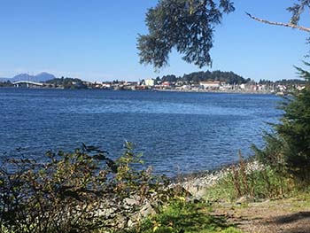 View of Town – View of Sitka from the walking trail of Totem Park.