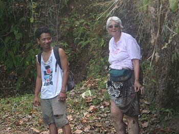 Our guide drove us to the foot of Mount Rinjani and casually suggested that we might want to “walk to the waterfall.” It sounded as if he was proposing a pleasant afternoon stroll. He certainly did not drop any hints about the suitability of my attire for the suggested “walk” as he introduced us to the young man who would escort us.