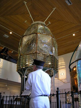 John Mann, a retired school administrator from New Jersey, was my tour guide. His wife (a retired teacher) helped to get him hooked on lighthouses when she “dragged” him on some lighthouse tours around New Jersey for school field trips. Since the late 1980’s, Mr. Mann has visited hundreds of lighthouses in the USA and Canada! Mann wears a circa 1930’s all-year white uniform as he gives tours of the grounds, which includes the three restored homes of lighthouse keepers as well as six other lighthouse complex buildings. The Principal Lighthouse Keeper’s house serves as a comprehensive museum about sailing along the Florida coast, with numerous displays, artifacts, and even interactive exhibits where you can hear various sounds of the sea like tugboat horns and crashing waves. A special exhibit on the history and workings of lighthouse beacons and Fresnel lighthouse lenses is housed in another building on the grounds.