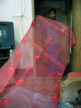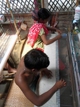 As we rest, sipping sickly sweet tea and munching a cookie, I wonder about the ethics of it all. Two people have spent weeks slogging over my saris. They have sat at their looms from dawn till dusk, with few breaks. Children are there, working. How long will their eyesight survive the close, detailed work they do? Should I be buying from them?
