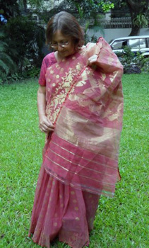 - Trying out my pink Jamdani sari