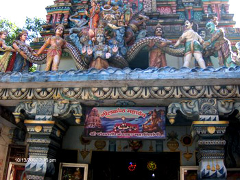 The architecture of the temple is divine. The entire structure is layered with brightly colored idols which explain the legend of Lord Shiva. The gods are immaculately portrayed in the churning of the ocean and in the centre is Lord Shiva.