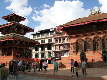 Fast forwarding to the 1960s and 1970s, the main hippie and traveler enclave of that era, Freak Street, is only a short walk away from Durbar Square. Government pressure ended its days as the city’s international hub, but it still has shops, guest houses and restaurants that are a reminder of its former glory. The Annapurna Lodge restaurant (Diyalo) provides a nice secluded setting and has a cheap Nepali food set meal and Everest beer.