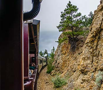 Shrill whistle sequences signal the stop at Trout Creek Canyon. Here we disembark for the grand view, a leg stretch and more photos, of course. Accommodating, patient crew pose with passengers while other folks dart around the train snapping images of the locomotive and valley from different angles. Again, the whistle signals, this time for us to board for the return trip. We change sides, relax as veteran passengers now, and take in the landscape.