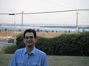 Before going out to seek ghosts, grab a bite to eat at Gentelin’s on Broadway. I savored some awesome-tasting Toasted Ravioli, an area delicacy which was invented in St. Louis. I took in some great views of the Mississippi River and the Clark Bridge (photo left, with author), which was actually modeled after Madonna lying on her back (you can tell when you see the bridge lit up at night!) – this according to Gary Hawkins. This restaurant emanates a rather festive-romantic atmosphere. Gentelin’s is on 122 E. Broadway and their phone number is 618-465-6080.