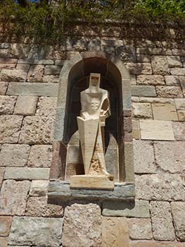 During a stay in Tarragona, we take a bus trip to the mountain monastery of Montserrat, a place I had been wanting to visit for a long time. The bus winds its way up into the Montserrat Mountains for what seems like hours but is only forty minutes. Why would anyone build a monastery way up here? Our guide, a pleasant and well informed young man named Victor, explains it to us in three languages, English, French and Spanish. Legend has it that around 880 AD, shepherds heard music and saw a light coming from a cave high in the mountains. Inside they discovered a Black Madonna. The statue, the oldest Black Madonna in Europe, is only 60 cm tall but when the bishop from the nearest town in the valley came to have it removed and taken to his cathedral, it proved impossible to move. So pilgrims began coming up to the mountain to see it. Eventually, an abbey was built to commemorate the Virgin.
