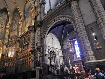 The Gothic-style Basilica and surrounding grounds are amazing. Alcoves in the walls hold statues, including one of San Jorge (St. George), the patron saint of Catalonia. The figure looks very much like a Gaudi creation. Not surprising, as Catalonia´s most famous designer worked on the Basilica as a young man. Montserrat is home to the Sanctuary of Our Lady and a Benedictine monastery and has served pilgrims and visitors to the mountain for approximately one thousand years. It sits majestically against the backdrop of the rugged mountains. The building has been destroyed and rebuilt a few times over the years, including during the Napoleonic wars, when many of the monks onsite were sadly killed. It was also damaged in the Spanish civil war (1936 – 1939). The current building was completed in 1949. Montserrat Basilica has been modernised to attend to the needs of pilgrims over the course of one thousand years.