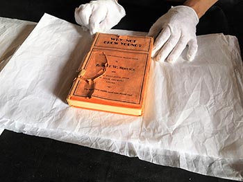 Apart from looking at the facility which used to handle all the mail coming into the centre of the Klondike gold rush, we had the opportunity to examine some more artifacts – including an original first edition book written by Robert Service.