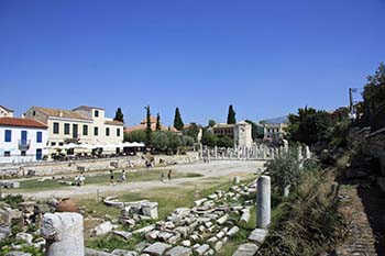 The commercial marketplace had been situated in the Roman Agora since the reign of Augustus (27 BCE-14 CE). You will find the ruins of several shops on the east side of the Roman Agora near the octagonal “Tower of the Winds”, but it is not clear if these date to the time of Paul.