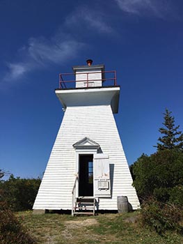 Backtracking past the shanty and across the main road, I followed another pretty path through the woods to visit the village lighthouse. Before heading there, I stopped to take a peek into the village’s root cellar. Opened as part of the village museum in 2017, the root cellar would have played an important role in the life of the Acadians of this region and surrounding areas. Built in the days before electricity, it kept vegetables from freezing in the winter months and kept food cool during the warmer summer months.