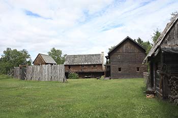 Near the river, you find replicas of several period houses, buildings and a trading post with all the necessities required for trade with the Indians including pots, pans and rifles. Aboriginal items obtained through trade included furs that had been bundled up for transport back to France and snowshoes for local use during the winter.