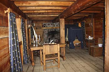 Champlain’s quarters, which he also referred to as his “habitation”, were on the second floor. His room had the finest furnishings on the whole set. A canopied bed and stone fireplace provided warmth during those cold winter evenings. A 3-pound cannon was placed in the corner near the window just in case undesirable guests decided to drop in for a visit like the Iroquois, the English or a mother-in-law.