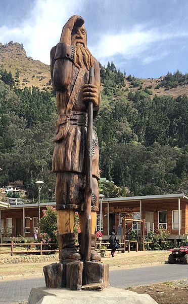 Robinson Crusoe Island statue of Robinson Crusoe in the town of San Juan Bautista: Richard N Horne / CC BY-SA